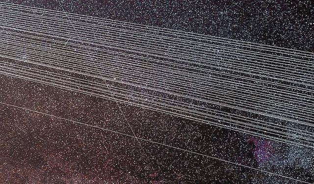 马斯克说,你们不用担心,我会把卫星天线涂成黑色,这样它的反光会变小。但无论如何,卫星始终在那儿,它们照样会遮挡星光,只不过白线换成灰线罢了。