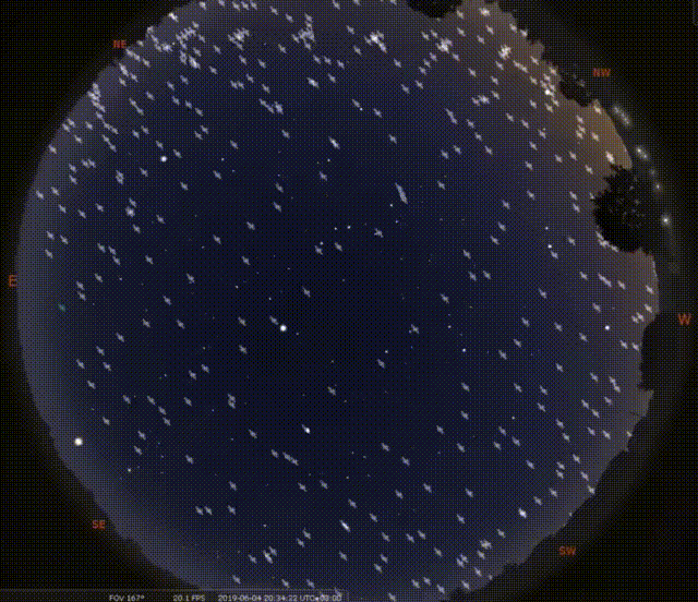 天文学家们观测宇宙最有力的工具是各种望远镜,如果说此前望远镜视野里是相对清澈的宇宙图像,以后他们看到的将满是星链卫星留下的光栅。请注意,下图只是星链的其中一组60颗卫星在天空留下的痕迹。