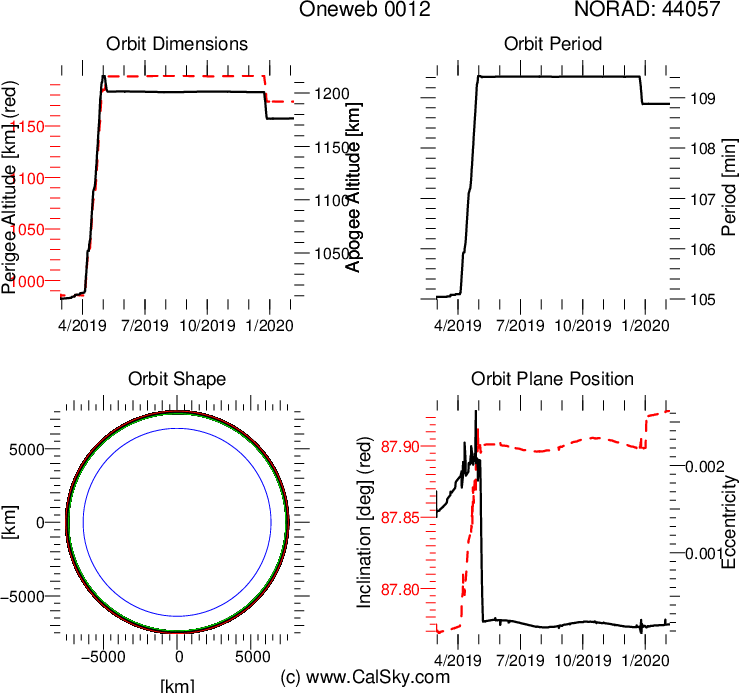 OneWeb卫星的入轨轨道为450 km的LEO,轨道倾角为87.4°。