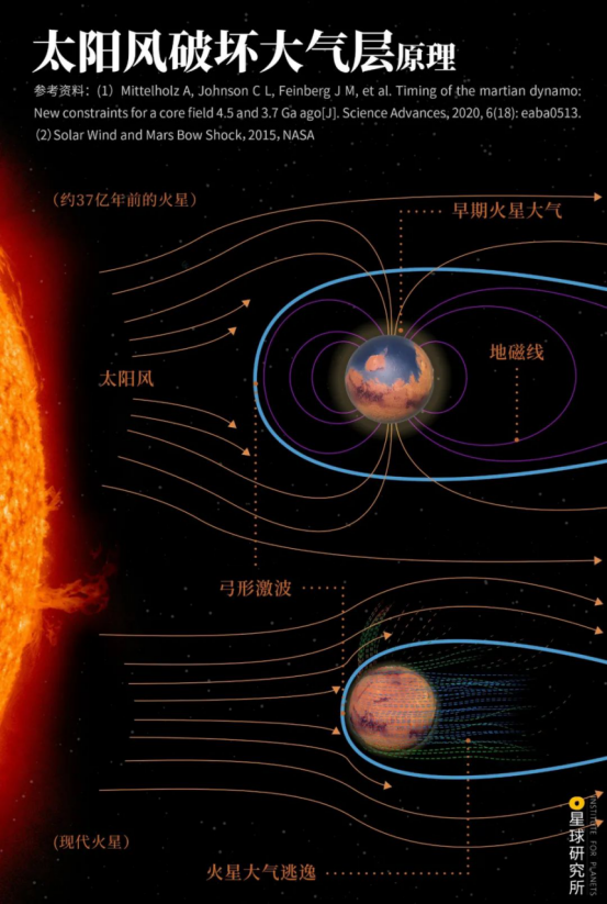 (太阳风破坏大气层原理,制图@汉青/星球研究所)