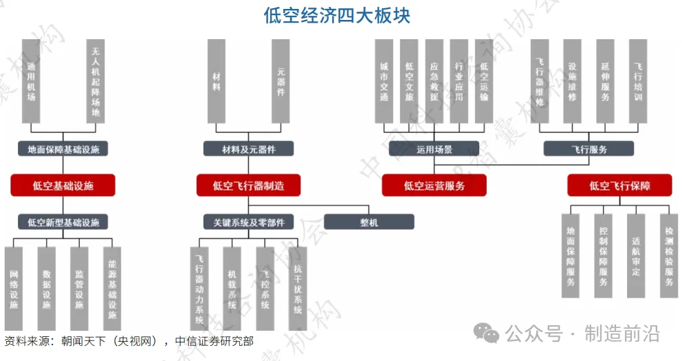 上游:主要包括低空基础设施建设、低空保障与综合服务等;